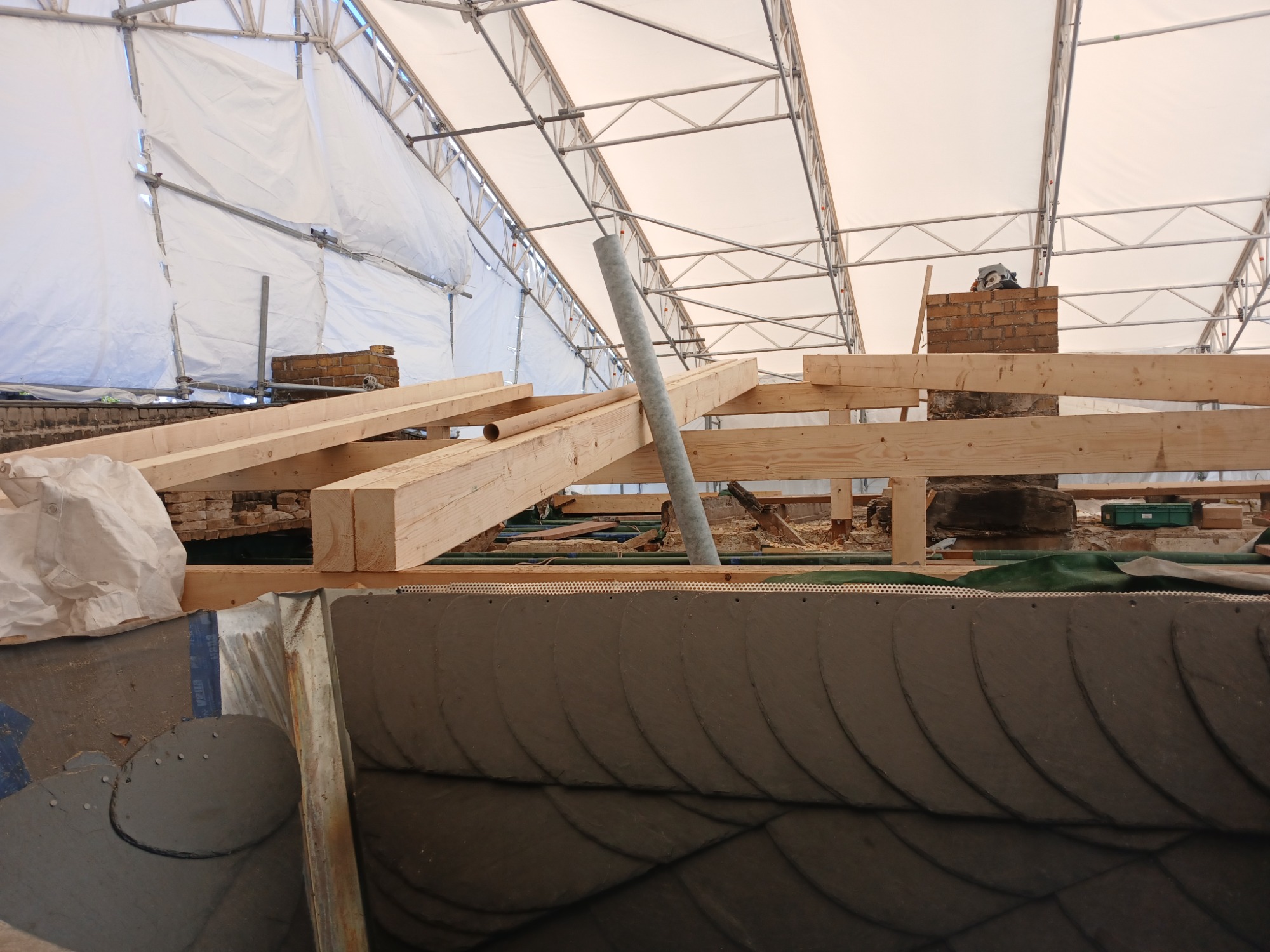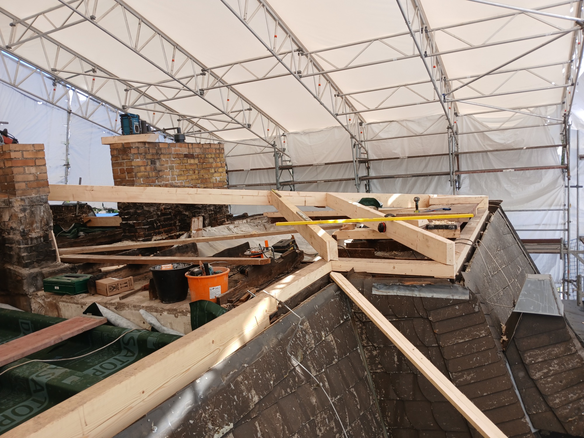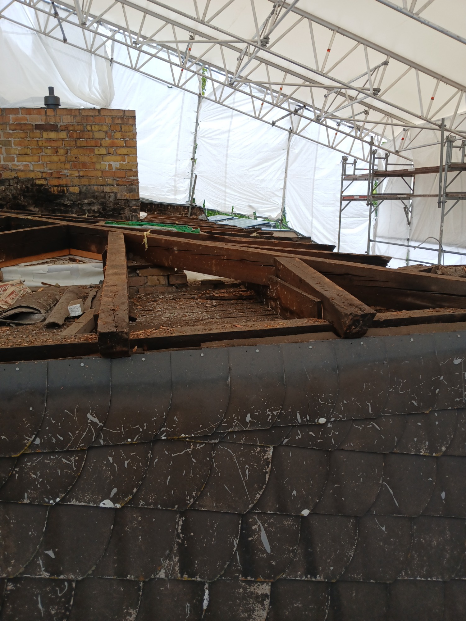 Engergetische Dachsanierung mit Spezialgerüst - Baubegleitung